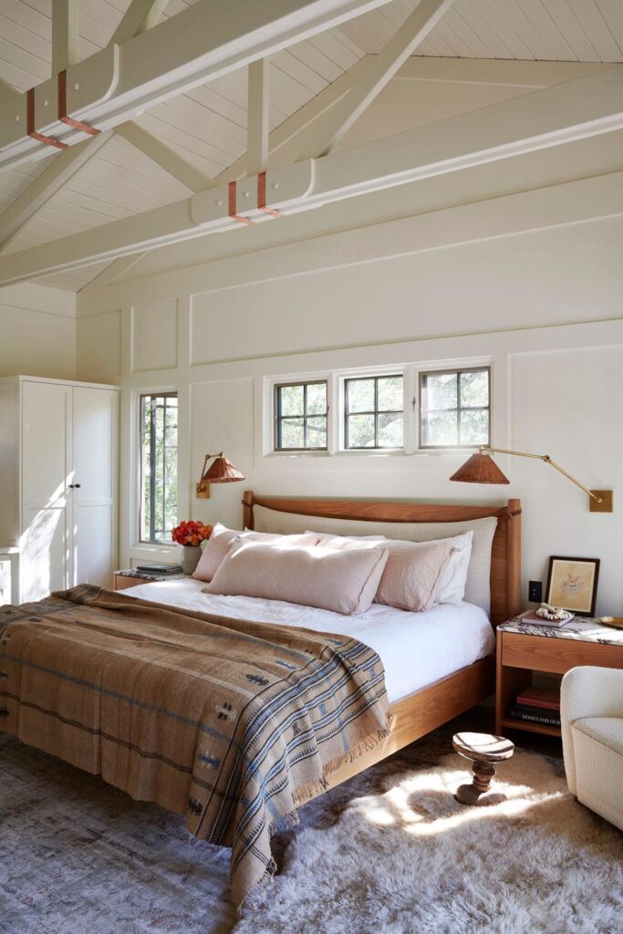 Mix in natural wood floors or beams, woven baskets, jute rugs, linen cushions, and cane chairs. Texture is what keeps the neutrals from feeling flat. design by rob diaz